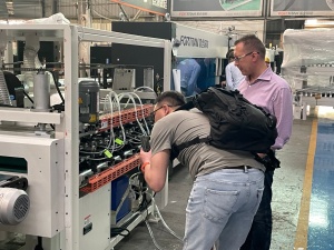 Następnie grupa klientów udała się w głąb warsztatu produkcyjnego i skontrolowała każde kluczowe ogniwo produkcji sprzętu na linii produkcyjnej w zakresie „precyzyjnego przetwarzania surowców — montażu podstawowych komponentów — debugowania i kontroli całej maszyny — testu starzenia gotowego produktu”. Delegacja skupiła się na szczegółach, takich jak „bardzo ciężka rama z belki stalowej” zastosowana w korpusie maszyny, „pełna gama komponentów Airtac” oraz „schludny i schludny projekt prowadzenia kabli” i bardzo pochwaliła wdrożony w warsztacie cyfrowy system identyfikowalności jakości oraz rygorystyczne standardy kontroli fabrycznej. Klient zgłosił na miejscu szereg spersonalizowanych potrzeb, a zespół techniczny zareagował natychmiast, dostarczając niestandardowe rozwiązania w połączeniu z zaletami modułowej konstrukcji sprzętu, eliminując obawy klienta dotyczące współpracy.